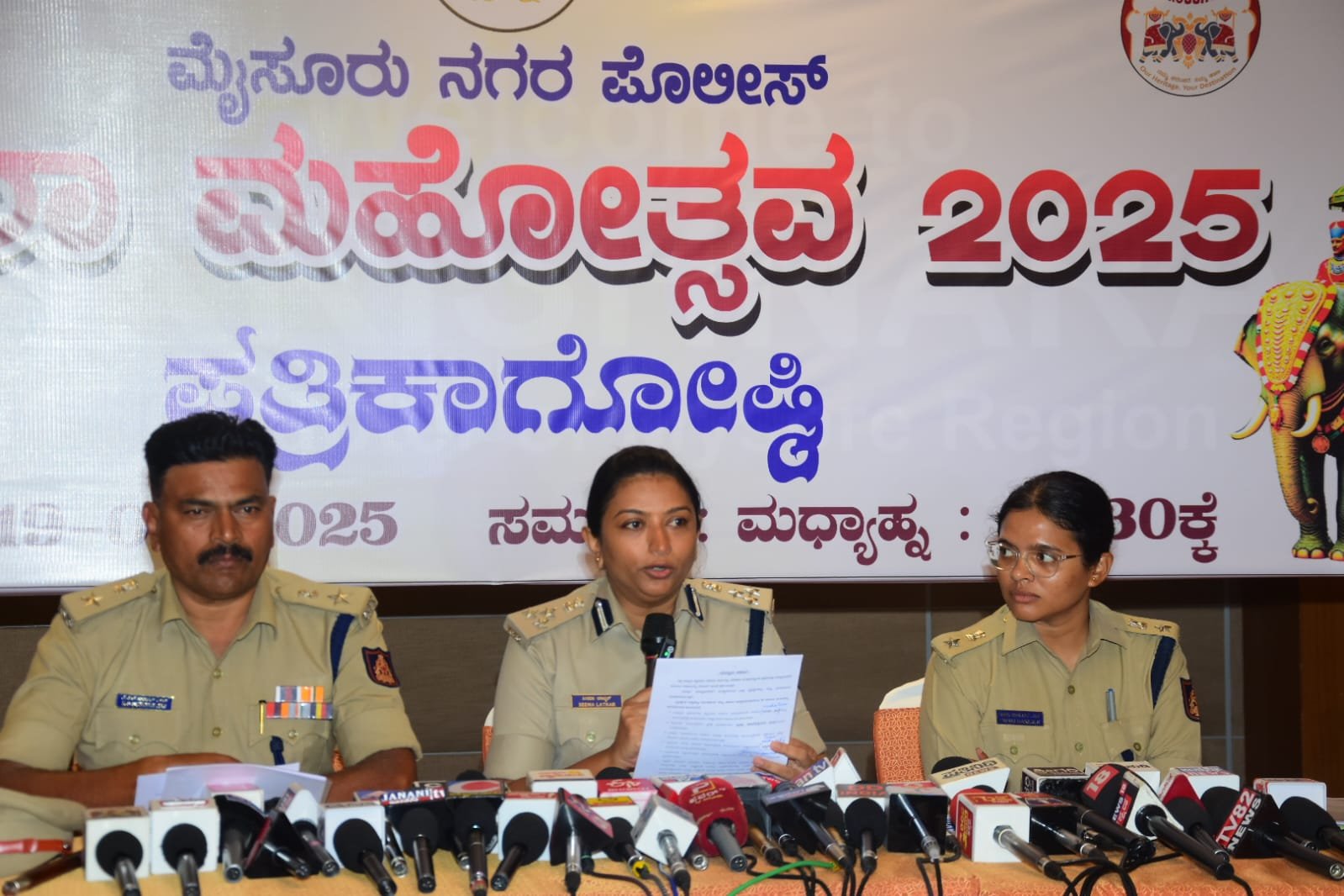 ಮೈಸೂರು :ನಾಡಹಬ್ಬ ಮೈಸೂರು ದಸರಾ-2025ರ ಮಹೋತ್ಸವವು ಸೆಪ್ಟಂಬರ್ 22 ರಿಂದ ಅಕ್ಟೋಬರ್ 02 ರವರಗೆ ಜರಗುಲಿದೆ.ಸುರಕ್ಷಿತ, ಸುಗಮ ಮತ್ತು ಸಾಂಪ್ರದಾಯಿಕ ದಸರಾ ಆಚರಣೆಗೆ ಮೈಸೂರು ನಗರ ಪೆÇಲೀಸರರಿಂದ ಸಕಲ ಸಿದ್ಧತೆಯನ್ನು ಮಾಡಿಕೊಳ್ಳಲಾಗಿದೆ ಎಂದು ನಗರ ಪೆÇಲೀಸ್ ಆಯುಕ್ತರಾದ ಸೀಮಾ ಲಾಟ್ಕರ್ ಅವರು ತಿಳಿಸಿದರು.