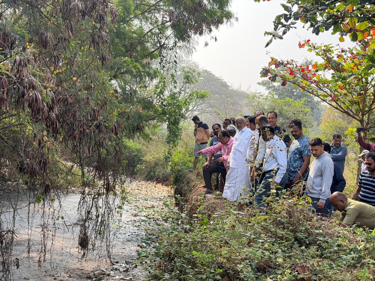 ಮೈಸೂರಿನ ದಟ್ಟಗಳ್ಳಿ ಕಬಕದಾಸನಗರ ಎರಡನೇ ಹಂತದ ಕೌಟಿಲ್ಯ ಶಾಲೆುಂ ವಾರ್ಗದಲ್ಲಿ ಹರಿದು ಹೋಗುವ ಒಳಚರಂಡಿ ತಾಜ್ಯ ನೀರು,ಲಿಂಗಾಂಬುದಿಕೆರೆಗೆ ರಾಜಕಾಲುವೆ ಮೂಲಕ ಹರಿದು ಹೋಗುವ ಮಲೀನ ನೀರನ್ನು ತಡೆುುಂವ ಕುರಿತಾಗಿ ಬುಧವಾರ ಸ್ಥಳಕ್ಕೆ ಭೇಟಿದ ಶಾಸಕ ಜಿ.ಟಿ.ದೇವೇಗೌಡ ನೀಡಿ ಪರಿಶೀಲಿಸಿದರು.
